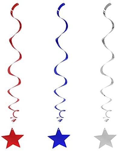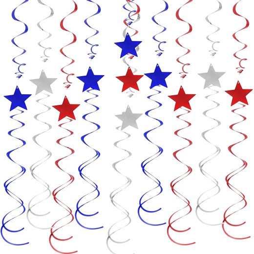 jiebor 30Pcs Hanging Swirl Star Swirl Hanging Red White Blue Swirls for Labor Day Memorial Day 4th Of July Home Party Decorations