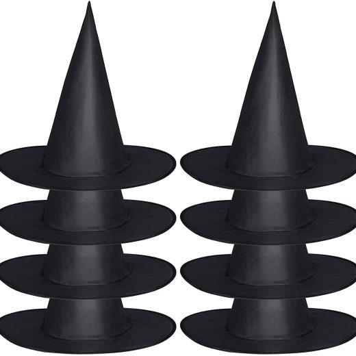 LARGE QUANTITY WITCHES HAT:The package comes with 8pcs witches hat, sufficient quantity to can satisfy your decorations and share with your friends and families. it will add a festive atmosphere to your party. DURABLE MATERIAL:Witches hat are made of quality oxford fabric, so durable, not easy to break,soft, comfortable to wear.suitable for most people to wear, you can use for a long time. WIDE APPLICATION: Perfect for Halloween, cosplay, theme parties, Masquerade ball, carnival.Easy for hanging directly on home, porch,door, yard, gardens, offices, rooms, restaurants, classroom, playground and wherever you want. FOLDABLE DESIGN:Witches hat is folded , just twist the edge of the witches hat , you can fold the hat.you can fold the hat for storage,saving space,and easy to carry to anywhere. SIZE: Witches hat measures approx 13.8 inches/38cm in diameter and 13.4 inches /34cm in height.so lightweight,suitable for any witch costumes.