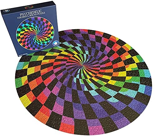 UNIQUE PUZZLES- Our Retro Psychedelic Colorful Round is a 1000 piece round jigsaw puzzle for adults and kids (13+) that will provide endless family fun and a great time with friends. The round shape is unique and adds to its beauty and complexity. Putting together puzzles fosters great parent-child interaction that develops focus, patience, shape, and pattern recognition all while laughing and smiling. Finished size is 26.5” x 26.5”. HARDEST PUZZLE IN THE WORLD- well, not really! But if you enjoy difficult puzzles or near impossible puzzles, try ours jigsaw puzzles. If you are looking to spend hours of fun at home or give this puzzle as a gift, it will deliver endless entertainment. You could even take this to the office and make this a team building exercise; encourages laughter and jesting, everyone will rave and enjoy the challenge. BRIGHT RAINBOW PUZZLE- the artwork is bright with vivid colors. You’ll enjoy the intricate details while putting our puzzles together. The round shape will have unique pieces which should help give you hints with assembly. Beautiful enough to frame and hang on your wall. ROUND PUZZLE- A fun shape, our round puzzles with 1000 pieces is unique and the pieces fit tightly together with perfect precision. You’ll love the smooth gloss finish and the vibrant colors. Finished size is 26.5 in diameter and makes a great wall decoration. This puzzle does NOT have lettering on the back, so no cheating here! Please don’t hate us, we just want to provide a truly difficult puzzle for adults to give you something to brag about! QUALITY- We’re a husband-and-wife team, Navy Veteran business owners that stive to provide 100% high-quality puzzles. Our puzzles are all U.S. designed by American artists, applied to high-quality grey board with NO lettering on the back. Sorry, no cheating here! These puzzles are meant to be challenging and without the back lettering it promises to provide many hours of enjoyment for the pro-puzzler in you. Finish our puzzle and you’ll have something to brag about!