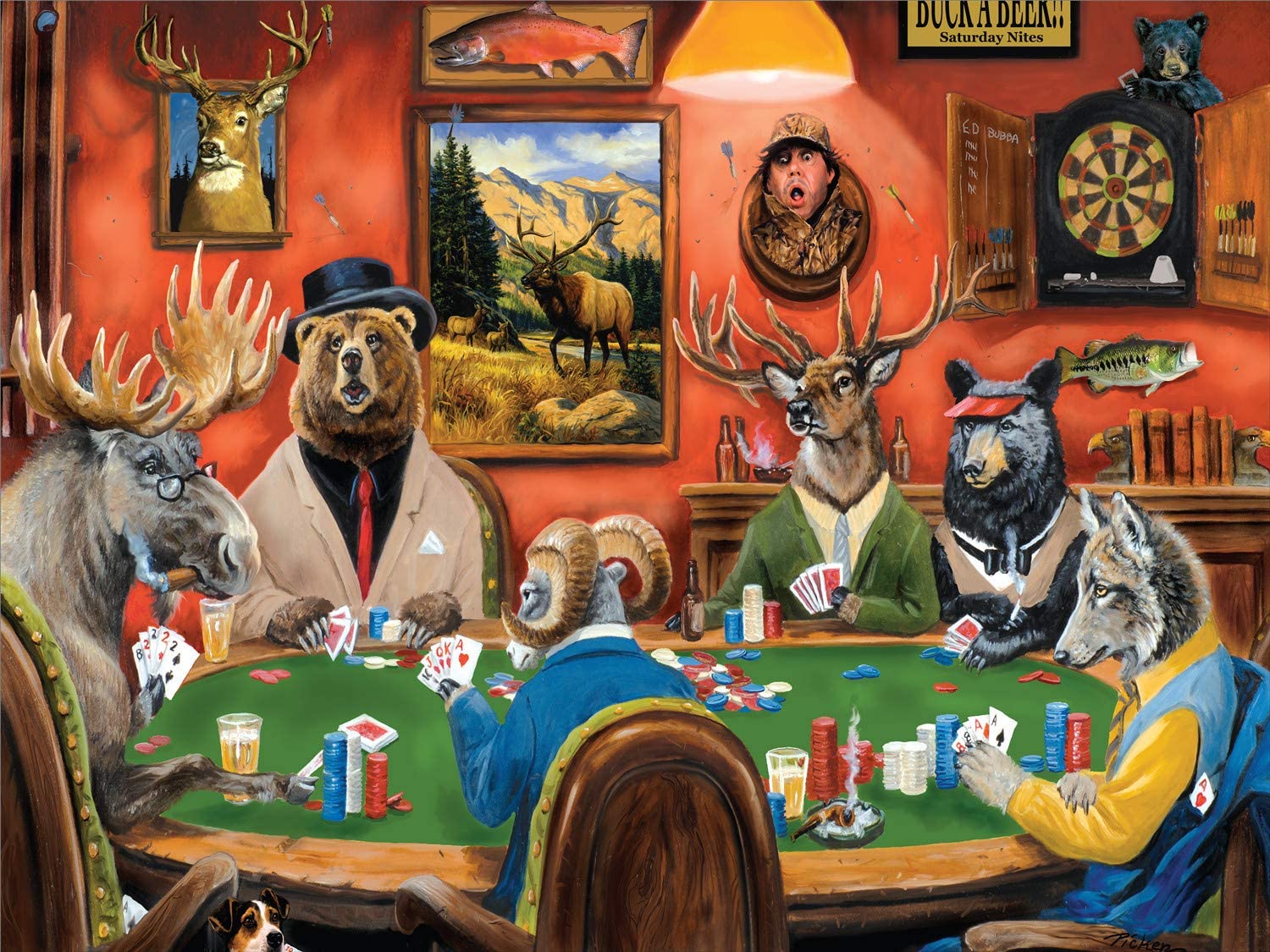 1 : 1000 Piece Jigsaw Puzzle – The jigsaw puzzle is featuring 1000 pieces with rich color. 2 : The puzzle displays the vivid colors with innovative Animal Play Card inflection Art design in a square shape. 24 colors printing makes the jigsaw puzzle more vivid and clear. Finished size is 27 x 20 3 : Challenge your family and friends and provide hours of fun and entertainment piecing this remarkable puzzle together, sure to become a permanent addition to your home 4 : Everyone will feel exciting when finished their own art-work. This round puzzle will be the best gift for birthday, Christmas, team building and other parties. It is time to move your eyes from electronic screen and try something different 5 : If you find a piece of the puzzle you received is missing, please contact us and we will resend one for you within 24 hours.