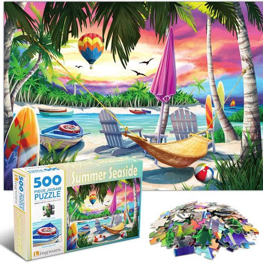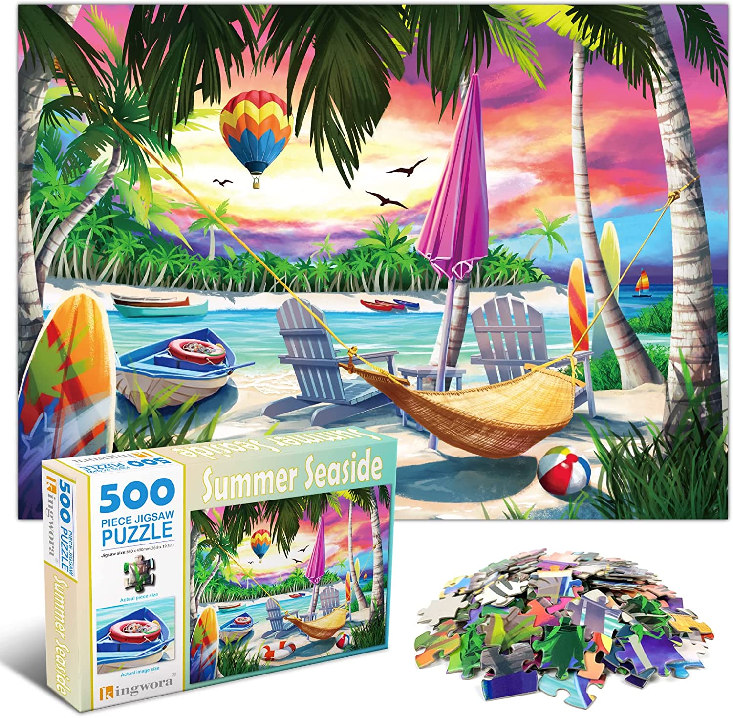Jigsaw Puzzles 500 Pieces, Hawaiian Summer Seaside 500 Piece Puzzles for Adults, Beach Sunset Floor Puzzle,Home Decoration Beach Wall Decor,Personalized Gift for Teenagers and Adults