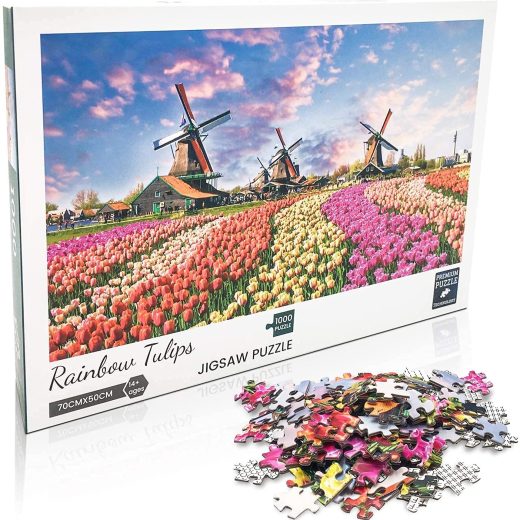 Jigsaw Puzzles for Adults 1000 Piece – Rainbow Tulips Jigsaw Puzzle Games for Adults, Families, and Kids Ages 8 and Up-27.5X20 Large Size Jigsaw Puzzle Toy Educational Gift Best