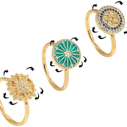 JILIYUPA 3Pcs Anxiety Cubic Zirconia Ring for Women Girls – Beautiful Spinner Fidget Anxiety Adjustable Opening Rings – Hypoallergenic Snowflake Flower Spinner Anxiety Ring with Beads Relieving Stress