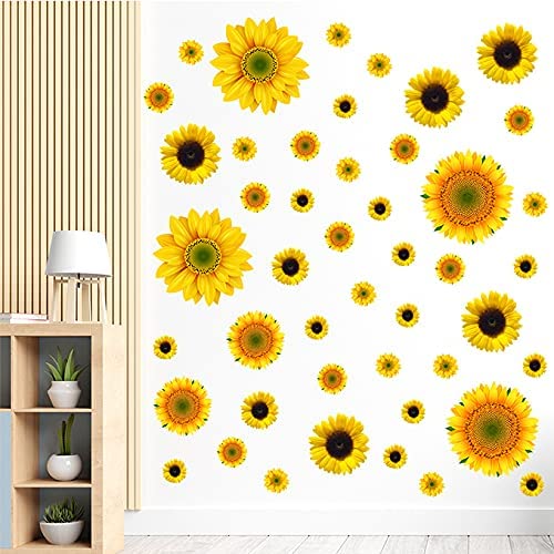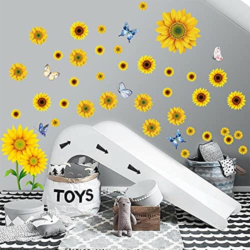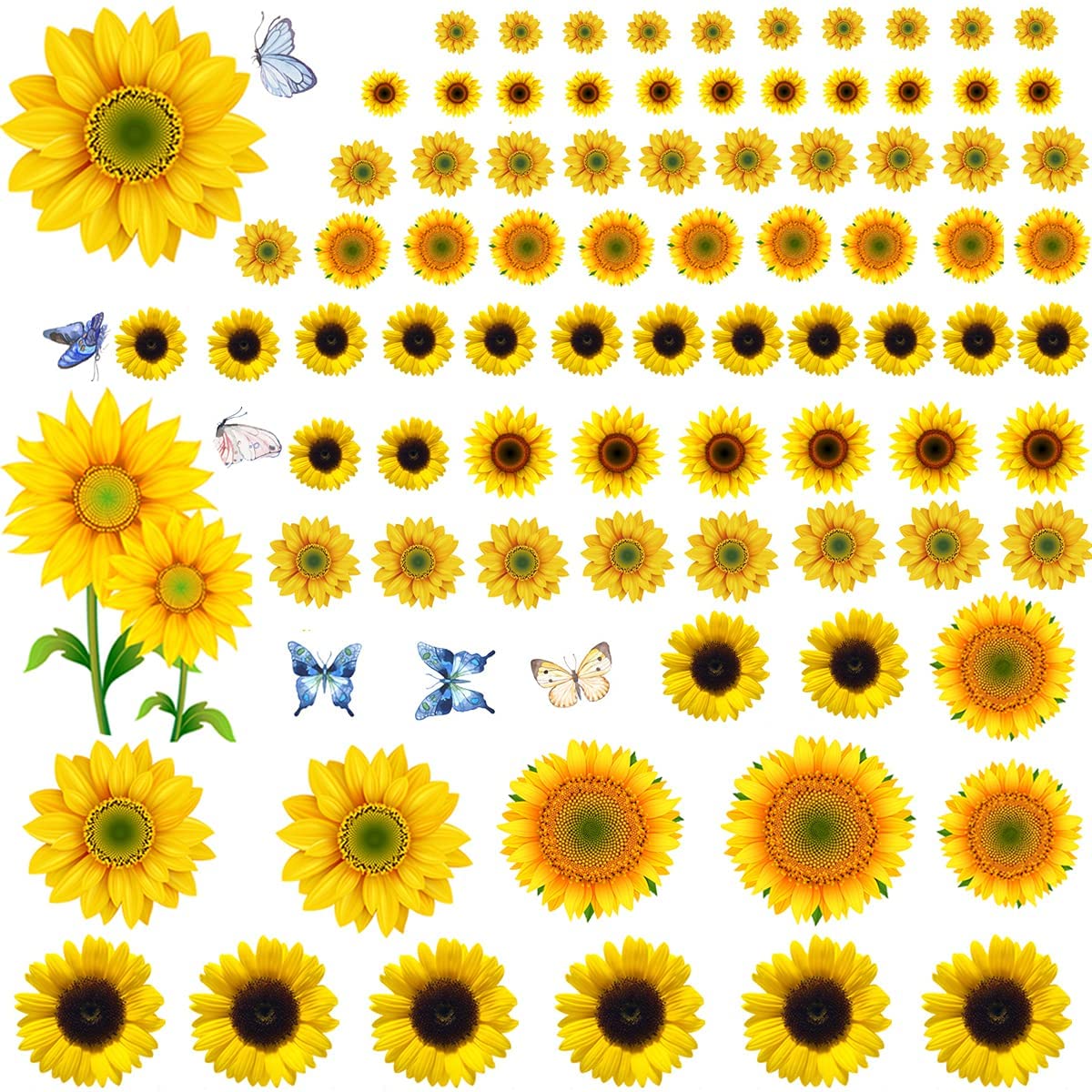JINGLANKEGS 91Pcs Sunflower Wall Stickers with 3D Butterflies Removable Yellow Flowers Decal Waterproof Daisy Floral DIY Decor Mural for Kids Baby Living Room Decoration