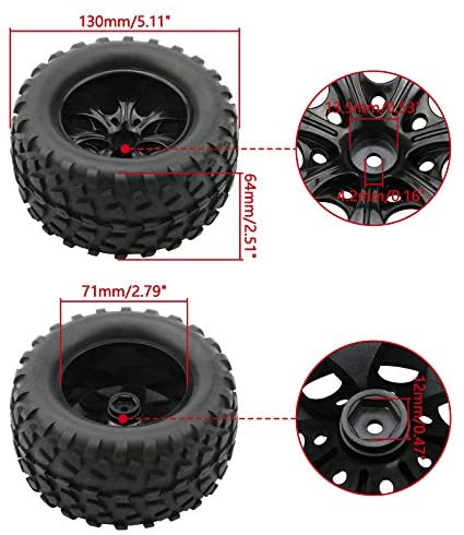 Wheel Drive Hex: 12mm/ 0.47; Diameter of the Axle Hole: 4.2mm/ 0.16.