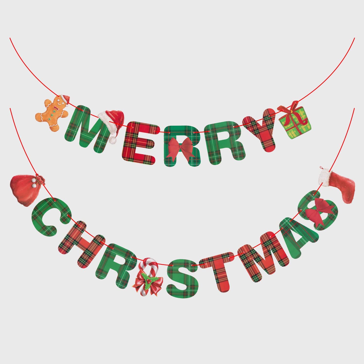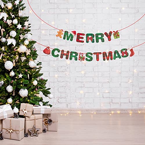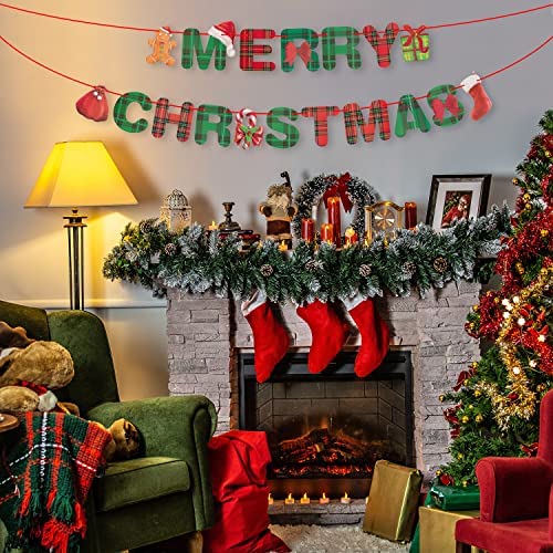 Jiying Merry Christmas Banner for Fireplace Banner, Christmas Wall Decor,Christmas Home Indoor Decorations, Christmas Chimney Banner with Sock and Gift Shape Decorations