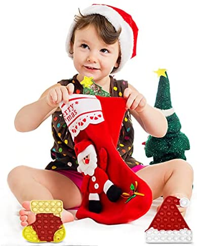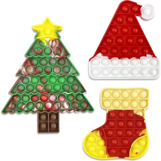 Jofan 3 Pack Christmas Pop Fidget Toys Features: 1. Not big or small, and with bright color, also a novelty toy, very suitable as Christmas gifts for kids boys girls toddlers stocking stuffers 2. Push fidget toys, the newest sensory fidget toys, press the bubble to hear the POP, stimulate your auditory senses for pleasure and release stress 3. You will get 3 style pop toys, they are designed as Christmas Tree, Christmas Hat, Christmas Stocking, all in Christmas theme, have a fun and happy Christmas 4. Made of high quality environment-friendly silicone material, its durable, non-toxic, safe for everyone to play Specifications: Styles: Christmas Tree, Christmas Hat, Christmas Stocking Size: As pic shows Materials: Silicone