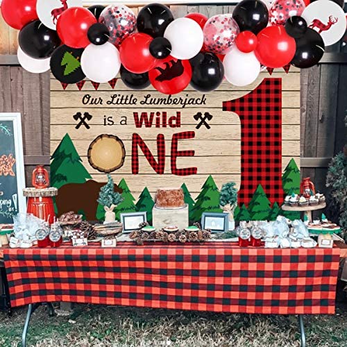 Jollyboom Lumberjack Balloon Garland 1st Birthday Party Decorations for Boys with Lumberjack Wild One Photo Backdrop Buffalo Plaid First Birthday Party Supplies
