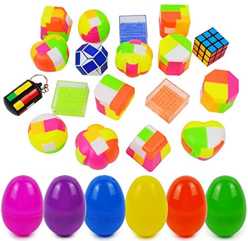 SUPER VALUE PACK. Our Easter Egg includes 18 packs of Plastic Brain Teaser puzzle games filled inside the egg. Each egg has a uniform 8 cm/3.15 inches height. UNIQUE DESIGN. There are 18 featured style Plastic Brain Teaser puzzles to test and sharpen your IQ and EQ. Enjoy and try separating the pieces to improve coordination and focus. This comes in a variety of puzzles and colors such as pink, orange, yellow, green, blue, and white. Great and fun way to relax. IDEAL GIFT & DECOR. This would give kids a fun and joyful easter season at home! Help them grow not only physically but mentally! Great gift option for kids’ school classroom prizes, gift exchange, Easter egg hunt event, Easter basket stuffers, party favor, and more! SAFE FOR CHILDREN: non-toxic, non-BPA. Meet US toy standards. Safety test approved. CUSTOMER SATISFACTION. Providing a great shopping experience is our main priority to our customers. Feel free to message us through “contact sellers” if products dont meet your expectations. The celebrations start at JOYIN!