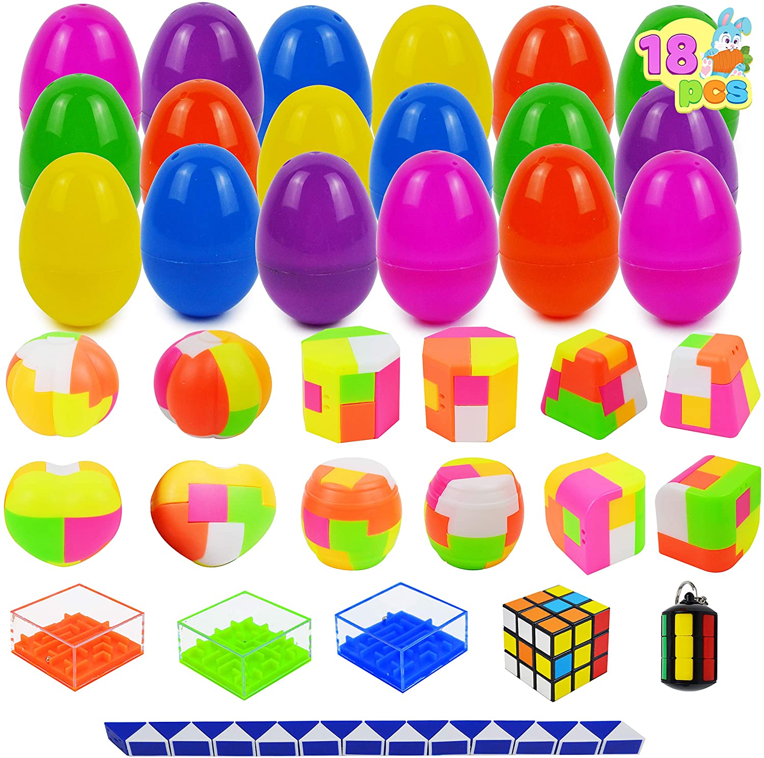 JOYIN 18 Packs Prefilled Easter Eggs Filled with Plastic Brain Teaser Puzzle Set for Easter Kids Party Favors, Puzzle Games, Easter Eggs Hunt, Easter Basket Stuffers Fillers, Classroom Prize Supplies