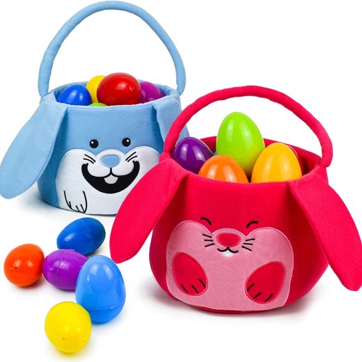 COMPREHENSIVE SET. Our Adorable Easter Basket Set for Kids includes 2 packs of Animal Plush Baskets with Short Fur. Each can store 53 easter eggs. UNIQUE DESIGN. Our cloth easter baskets include 1 Blue Rabbit Plush Basket Set and 1 Pink Rabbit Plush Basket Set with three-dimensional ears Featuring such a cute and irresistible design that your kids will surely enjoy! PREMIUM QUALITY. Perfect for Easter eggs, candies, chocolates, fruits, small toys, and other items. Excellent handmade tote bag. You can take it anyway in your hand and also hang it on the wall as a decoration. SAFE FOR CHILDREN: Non-toxic, non-BPA. Meet US toy standards. Safety test approved. CUSTOMER SATISFACTION. Providing a 100% satisfaction experience is our main priority to our customers. Feel free to message us through “contact sellers” if products dont meet your expectations. The celebrations start at JOYIN!