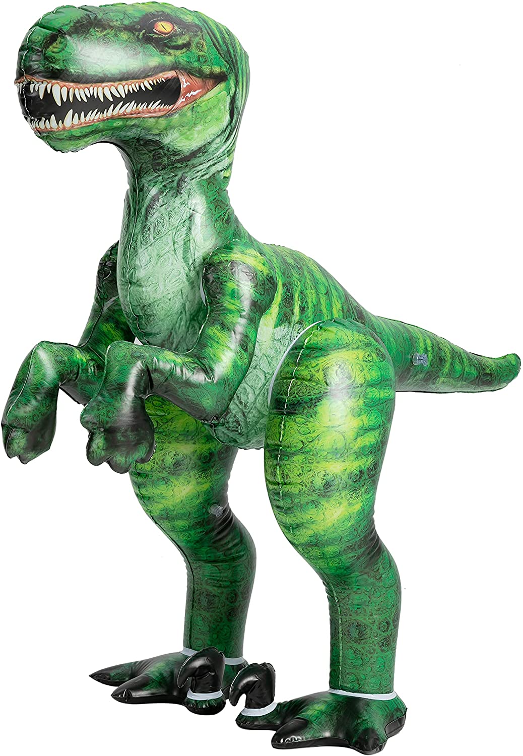 JOYIN 60” Inflatable Dinosaur Toy, Giant Green Raptor Toy for Pool Party Decorations, Birthday Party Gift for Kids and AdultsREALISTIC DESIGN: Best Cool and Realistic 60” tall Inflatable Raptor Dinosaur Toy (Green) for Decorations, Birthday Party Decorations and Gifts.HIGH-QUALITY: Thick vinyl material provide durable use.INFLATABLE DINOSAUR: Inflate the Dinosaur with a pump to get the best result. It stands with its own legs, does not need any support.WIDE APPLICATION: Great for gifts, party, home or birthday decorations. Best gigantic inflatable blow up dinosaur.CHILD SAFE: Non-Toxic material. Meet US Toy Standard. ASTM Safety Test Approved.