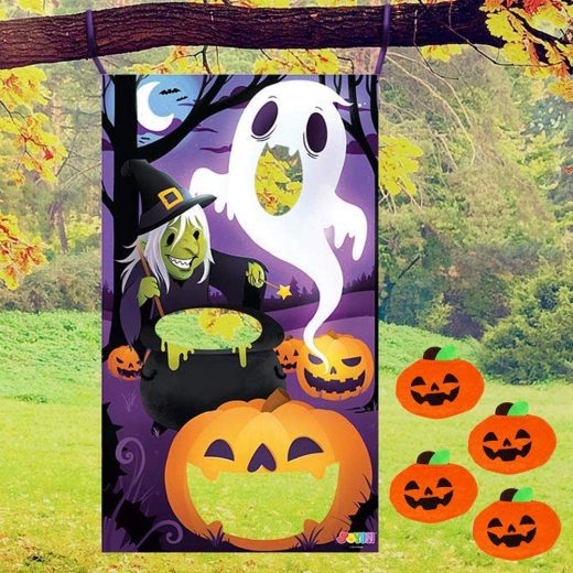 VALUABLE PACK. Halloween Characters Witch, Pumpkin, Ghost Toss Game Pack Comes with 30”x 54” Gamepad and 4 Cute Pumpkin Design Bean Bags. Vibrant Art Work Design Toss Game Pack will Bring you Super Fun and Excited Game Time in Halloween. Create a Scary and Wonderful Halloween Vibe. Perfect for Halloween Event, Festival and any Party Favor Supplies. Hanging it up on the Trees in your Backyard, Outdoor or Indoor are all Suitable. Hanging it up on the Trees in your Backyard, Outdoor or Indoor are all Suitable. Spend some Halloween Game Times with Your Friends and Family to Let Them fully engage and Thrilled with this Halloween-Themed Game Pack REUSABLE AND PORTABLE. The Gamepad is Easy for you to Store, Set up, Fold and Carry anywhere. Durable Quality Gamepad and Bean Bags Can be also used in Multiple Times MONEY BACK GURANTEE- Contact Seller and we will refund you or ship you a replacement if the one you received fail to work in 90 days.