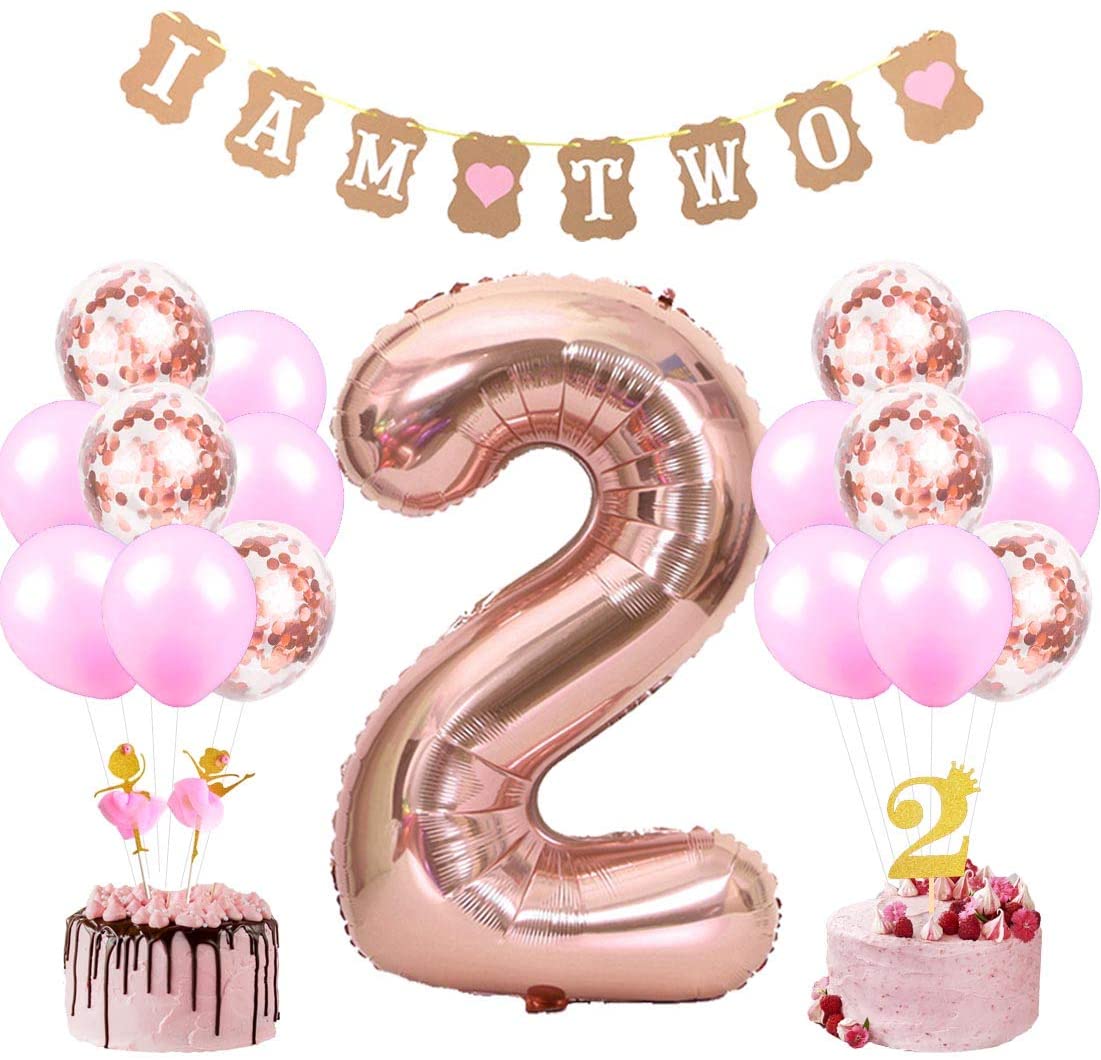 All You Need: The package comes with 1*40”number 2 foil balloon, 1 set of I am two banner, 2 dancing girl cake topper and 1 gold glitter number 2 c…