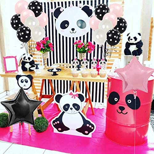 All in One Set: 1 panda happy birthday banner, 4 panda head foil balloons, 6 panda cake toppers, 10 black wave point balloons, 5 white balloons, 10 light pink balloons, 2 black and 2 pink five-pointed star foil balloons. Easy to Set Up: Panda happy birthday banner should bunched by yourself but it’s very easy. Just string them in order with tools we provide. It will very cute and attractive after hanging on walls. Floating Foil Balloons: Please fill foil balloons with air for longer inflating. Fill with helium for floating. Then you can bunch then together, stick or hang them on walls, doorway, windows, backdrop or somewhere else. Perfect Color Matching: Black, white pink color matching will make your party cute and charming! Girls like panda can’t help cheering up when seeing them. Panda Fans Favors: Black and white color match panda theme well. Perfect for panda party of 1st 6th 16th birthday even adults birthday, panda theme party and panda fans meeting.