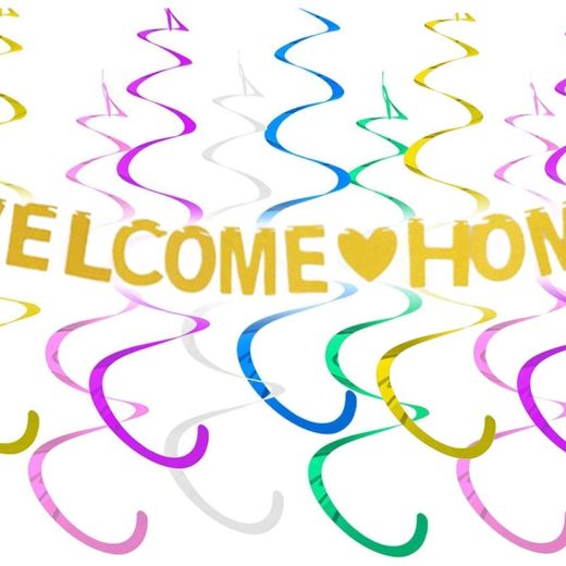 For Multiple Occasions: Welcome Home Banner kits are perfect for family reunion, Office Party, Christmas Day, New Year, etc. decoration. Package Included: 1 pc of gold glitter welcome home banner, 10 pcs of Rainbow Plastic Swirls. Assemble Required: Welcome home banner comes flat, quite easy to put “welcome home” Letters onto the strings. Glitter Design: Made from high-quality gold glitter card stock, durable and shining, nice combination with colorful Plastic Swirls Money Back Guarantee: A friendly customer service stands behind our items, we offer 100% money back guarantee if you receive any detective or damaged items.