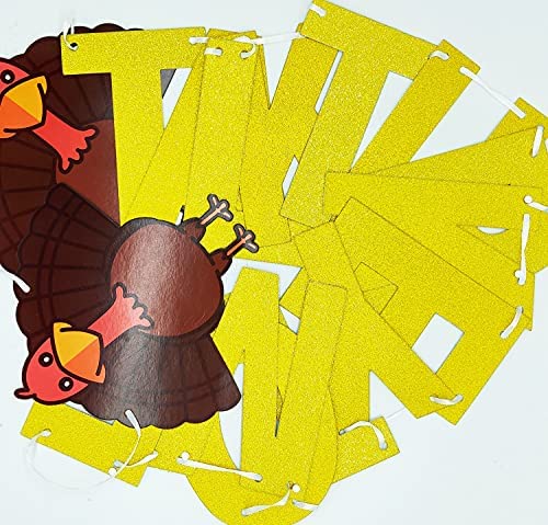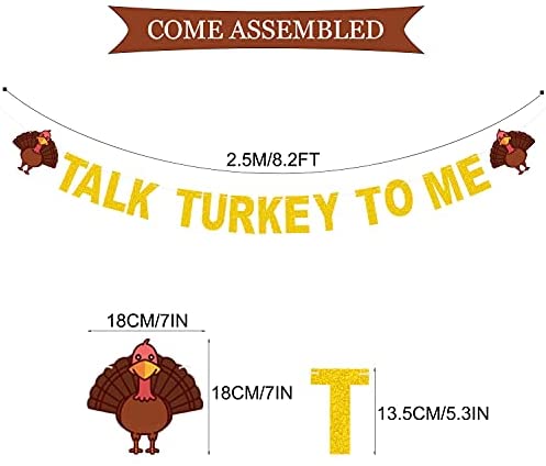 JOZON Talk Turkey To Me Banner Gold Glitter Thanksgiving Banner Garland with Turkey Signs Thanksgiving Party Decorations for Mantle Fireplace Wall Party Supplies