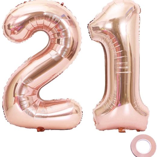 Juland Rose Gold Number 21 Balloons Large Foil Mylar Balloons 40 Inch Giant Jumbo Number Balloons for 21th Birthday Party Decorations