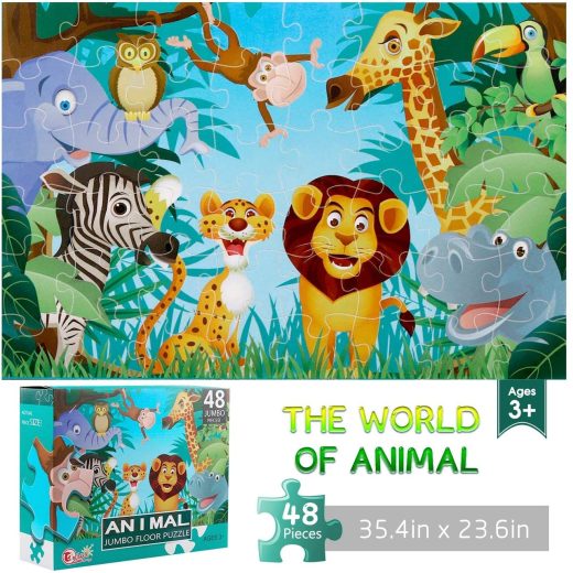Floor Puzzles for ChildrenSet includes 48 pieces of jumbo floor puzzles with vibrant and engaging illustrations in a combination of fascinating colors. High Quality MateriesEach puzzle piece is made of extra-thick, durable cardboard and printed with non-toxic ink in a glossy finish that is wear resistant to ensure long time storage. Education Puzzle GamePerfect educational learning tool to boost cognitive, problem solving skills, and hand eye-coordination; for kids age 3 and up. After completion, they will have a sense of accomplishment, which is very helpful for their intelligence and self-confidence. Perfect GiftComes in a perfect gift box with a handle strap for convenient carrying and easy storage. Front of box features complete artwork for reference.A good idea for Ages 3-6 4-8 kids gifts of birthday, Christmas day. Quality AssuranceIf you have any question about product quality and instruction,please contact us.100% customer satisfaction guarantee.