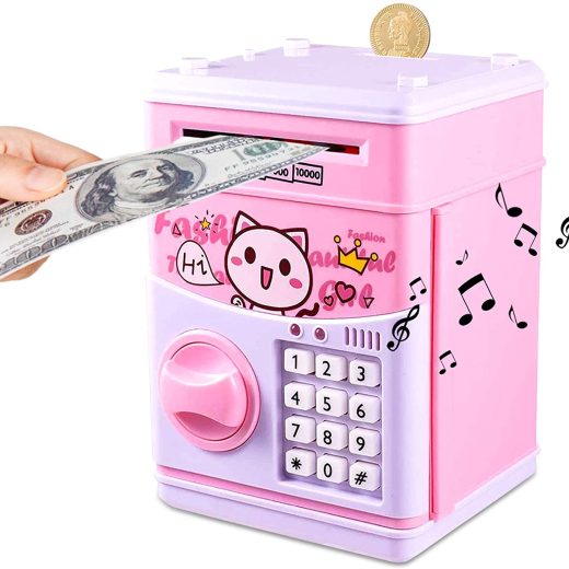 Money Bank with Music Play Function- With 11 built-in children’s songs, the music will start when you put the money into the piggy bank. Automatic …