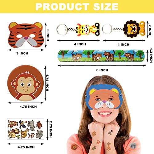 Jungle Safari Party Favors, 61pcs Safari Theme Birthday Party Decorations With Felt Animal Masks, Keychains, Temporary Tattoos, Slap Bracelets, Buttons Party Supplies For Kids Boy
