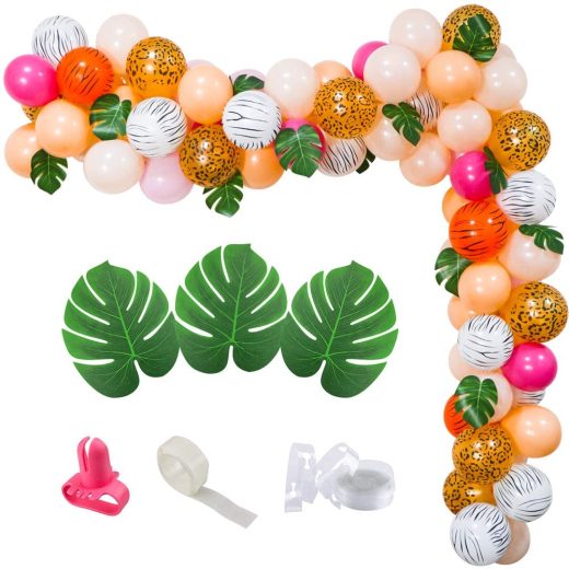 Unqiue Jungle Safari Balloon Garland – The balloons garland with a fun mix of rose red, Macaron orange and Champagne balloons, with the addition of white, gold and orange animal striped balloons and vivid green artificial tropical palm leaves, so lively and fun, adding a jungle atmosphere, use it to impress all your guests and the birthday girl at your next event! 85Pcs Animal Balloons Decoration Kit – Totally 85PCS balloons, including 30Pcs 10 Champagne Balloons, 20Pcs 10 Macaron Orange Balloons, 10Pcs Light Pink Balloons, 10Pcs 12 Gold Leopard Print Balloons, 10Pcs 12 White Zebra Print Balloons, 5Pcs 10 Light Rose Red Balloons, 5Pcs 12 Orange Tiger stripes Balloons, 12Pcs 8 Artificial Leaves, 1Pc Balloons Knot Tool, 1Pc 5M Balloon Chain, 1 Roll Glue Dot. Premium Quality – Our Safari balloon garland are made of high quality thicker latex, worries free, durable for decorations, extreme nice balloons set in unique color and styles, create a vibrant Jungle world and dazzle your guests with this fun balloon arch to elevate your parties theme! Easy to Assemble – Simply inflate your balloons and secure to the provided balloon strip tape, you can hang the balloons on the wall near the desk, over a door frame, entryway, along the staircase or use it for a custom photo booth party backdrop, these balloons are gorgeous when used to make balloons bouquets for home and table decorations. Perfect for Multiple Themed & Occasions – Perfect for girls Jungle themed birthday party, baby showers, gender reveals decoration, safari party supplies, tropical Hawaiian party, luau, aloha or beach party decorations, animal theme party, or adventure parties, wild one, two wild and three birthday parties, rainforest baby showers, childs party, family reunions, pet party or other holiday decorations, ideal for party indoor or outdoor as a photo booth backdrop, etc.