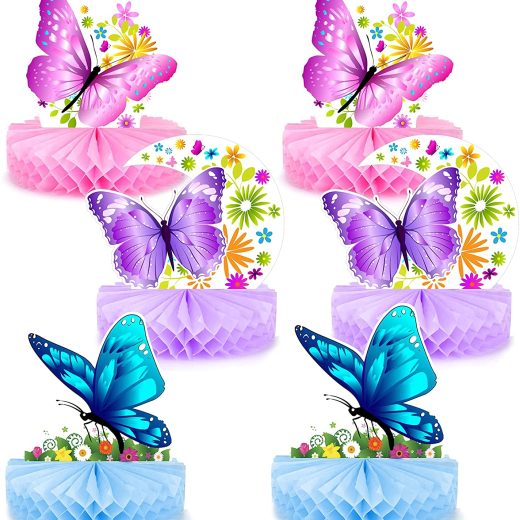 Juome 6 Pcs Butterfly Party Decorations Supplies, Butterfly Honeycomb Centerpieces Butterfly Table Toppers for Theme Party Favor Birthday Table Decorations
