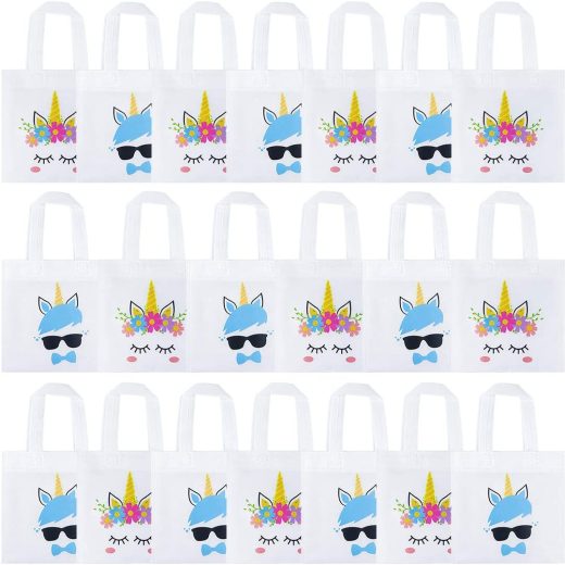 Perfect Unicorn Party Supplies These adorable bags are great to present candies, gifts, small toys for children, which is the best gift for the birthday girl boy as well as for unicorn party decorations, baby shower party supplies. Lovely Unique DesignsGift bags includes 2 patterns, floral unicorn with gold glitter horn for girls, blue unicorn with gold glitter horn and cool sunglasses for boys. Candy bags for unicorn birthday decorations are so eye-catching and unique that your boys or girls will like it. Reusable& Sturdy BagsGood quality bags for unicorn decorations for boys or girls, great for kids to take away and reuse, Perfect birthday party ideas for unicorn toddler gift bag party favor bags to create the most festive event for your children in birthday party. For Wide OccasionsYou can use gift bags for unicorn party favors for treats, biscuits, snacks, small prizes, favor bags, goody bags and small gift bags. Wherever they are placed, they are fantastic party decorations. Perfect Size20 Pack goodie bags for unicorn party gift bags with Handles are 7.9*7.9 inch size. Perfect birthday decorations for unicorn party gift bags to hold more of various toys or small items carried
