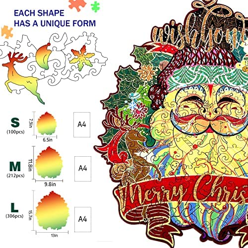 KAAYEE Wooden Jigsaw Puzzles- Santa Claus Puzzle Unique Shape Wood Puzzle, Best Gift for Adults and Kids, Family Game Play Collection (M-11.8×9.8in-212pcs)