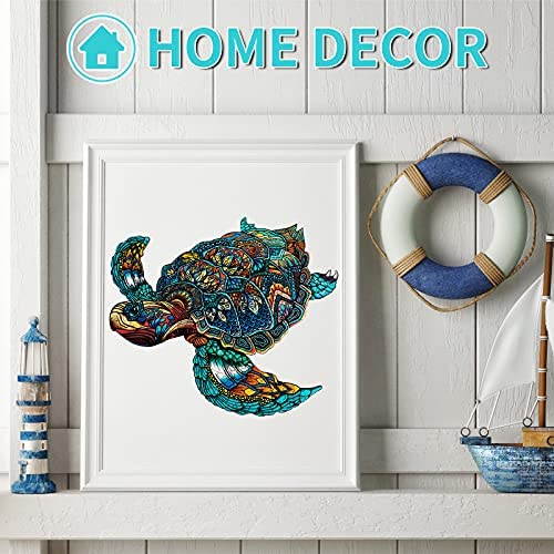 TURTLE WOOD PUZZLE: Enjoy your leisure time with KAAYEE unique jigsaw puzzle, indulge yourself in the puzzle world, relieve yourself from all-day stress. This wooden puzzle is made of high-quality basswood, has 100pcs unique shape Jigsaw Pieces, and a completed size of 9.4*8.0in GORGEOUS COLORS & DETAILS: This wood puzzle has gorgeous coloured painting, adopt advanced laser-cut art. Each puzzle pieces interlock precisely, with perfect snap and neat edge. Fine craftsmanship, looks like a real sea turtle swimming out of the puzzle. PERFECT GIFT FOR ADULTS & KIDS: Still looking for a unique gift for your kids or friends KAAYEE Unique Shaped Jigsaw Puzzles wooden are definitely the best gift choice for your kids, grandma, grandpa, friends on Birthday, Christmas, Festival, or Special Occasions. Enjoy the joy of finding, and the joy of thinking. FUN FOR ALL AGES: Choose these wooden animal-shaped puzzles as a way to relieve stress after a long day at work or a way to bond with your friends or family members. The puzzle can promote eyes hand coordination, raise focus, patience, logical thinking, and problem-solving skills. SATISFACTION ASSURED: Buy with confidence! Every purchase is backed by our 30 Day Money Back Guarantee. If there are any missing or damaged pieces, please reach us.