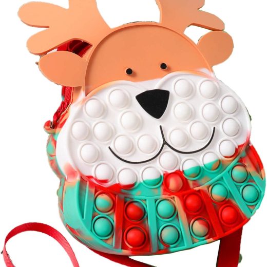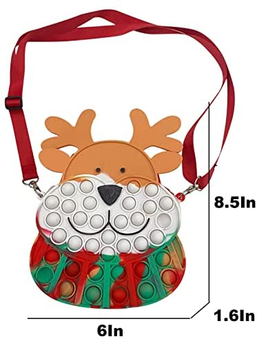 Kabvry Pop Shoulder Bag Fidget Toys , Rainbow Simple Pop Fidget Bag Toy , Popper Pop Bubble Fidget Sensory Toys , School Supplies Backpack Silicone Bag Pop for Girls (Christmas Deer)