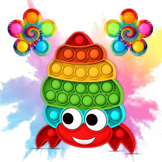 KAHAS Push Pop Fidget Toy | Pack of 3 | Crab Pop It with Two Simple Dimple Fidget Spinners Pop it | Stress Relief Toys for Kids and Adults | Pop Bubble Sensory Toy