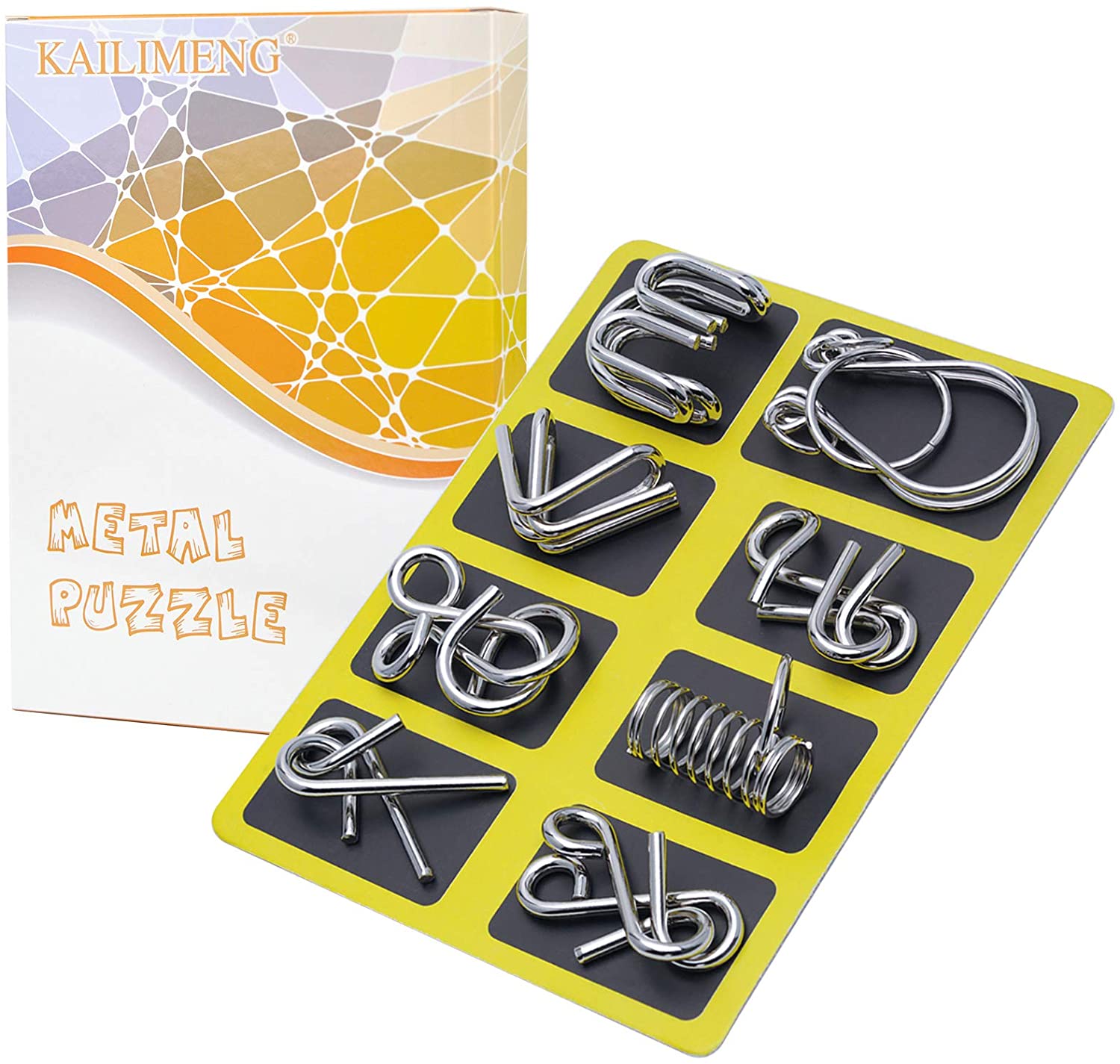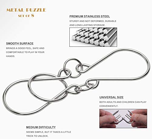 KAILIMENG Metal Puzzle, Brain Teaser Metal Wire Puzzle for Adults and Kids – Mind Game 3D IQ Jigsaw, Set of 8