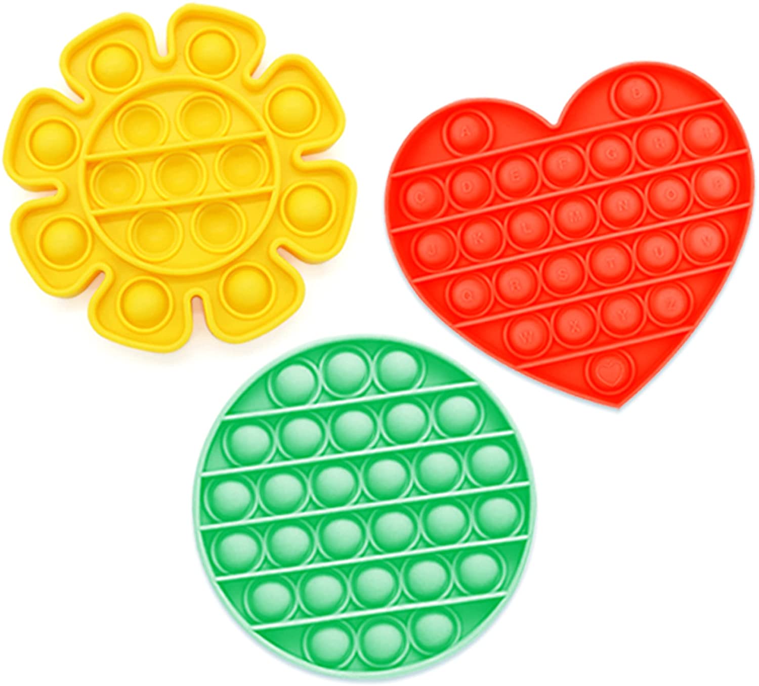 PERFECT BUNDLE: Our set includes three (3) different colorful rainbow pieces that measure a large five (5) to six (6) inches in diameter. This fidget toys kit will be a welcome addition to anyones toy box collection!Our set includes three (3) different colorful rainbow pieces that measure a large five (5) to six (6) inches in diameter. This fidget toys kit will be a welcome addition to anyones toy box collection! SENSORY FIDGET TOYS: Our fidget toys pack features three (3) toys in three (3) different shapes and colors! GREAT FOR ANYWHERE: Small and portable enough to conveniently take in the car or on an airplane, our fidget toys for kids and adults dont require electricity, batteries, or Wi-Fi. Have you or your child take a break from the tablet, smartphone, and television screens FUN LEARNING Easily washable and made of a durable and soft toy-grade silicone.
