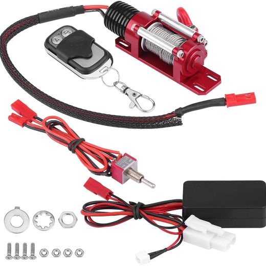 Kathlen RC Winch Set- 110 Scale RC Model Vehicle Crawler Car Accessory Metal Winch with Remote Controller Used to Tow Vehicles in mud
