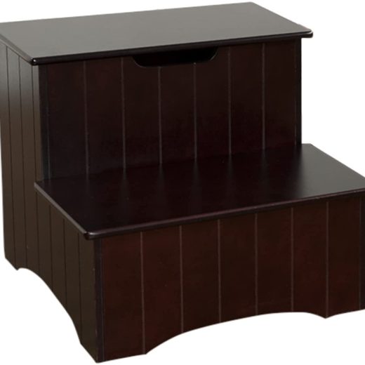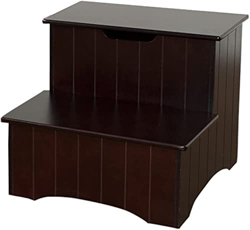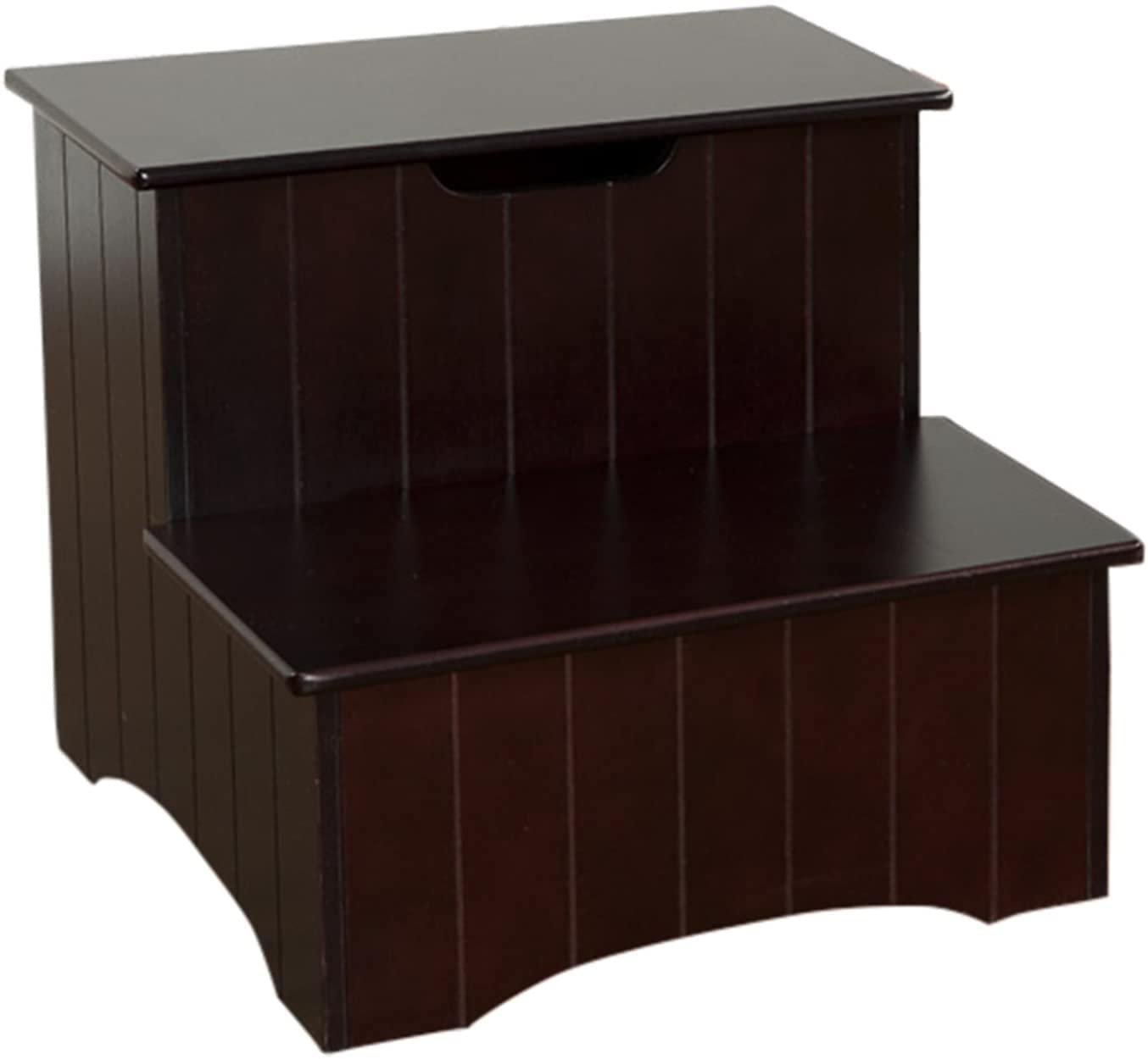 KB Designs Obert Wood Bedroom, Bathroom and Kitchen Step Stool with Storage, Cherry
