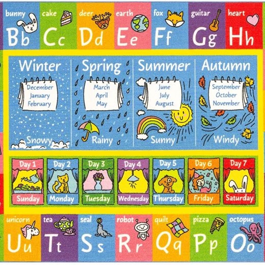KC Cubs Playtime Collection ABC Alphabet, Seasons, Months and Days of The Week Educational Learning Area Rug Carpet for Kids and Children Bedrooms and Playroom (5 0