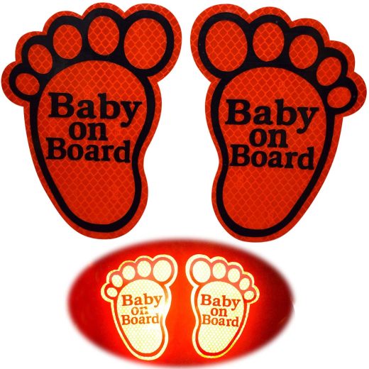 KE-KE 2PCS High Intensity Reflective Safety Sign Baby on Board in Car Feet Decals Sticker for Car Bumper Window in All Weathers (Red)