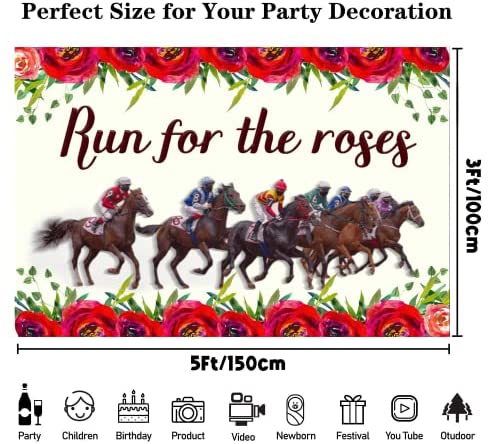 Kentucky Derby Decorations Backdrop, Run for The Roses Banner 5x3Ft Kentucky Derby Party Supplies, Kentucky Derby Backdrop Horse Racing Decorations for Kentucky Derby Party