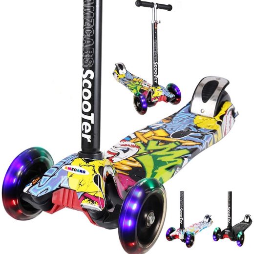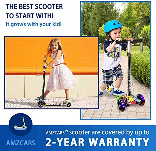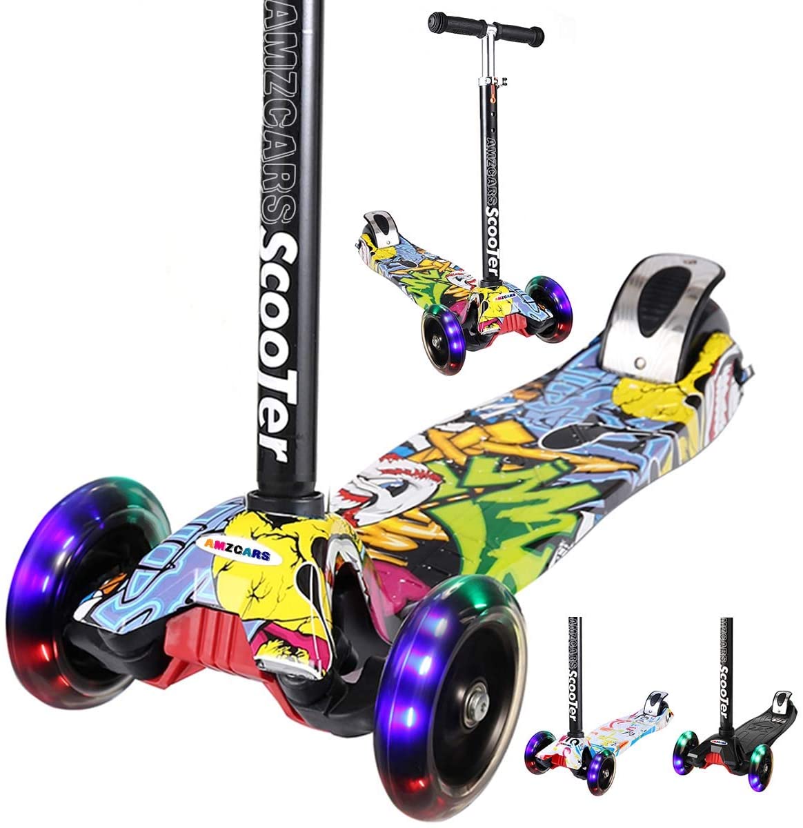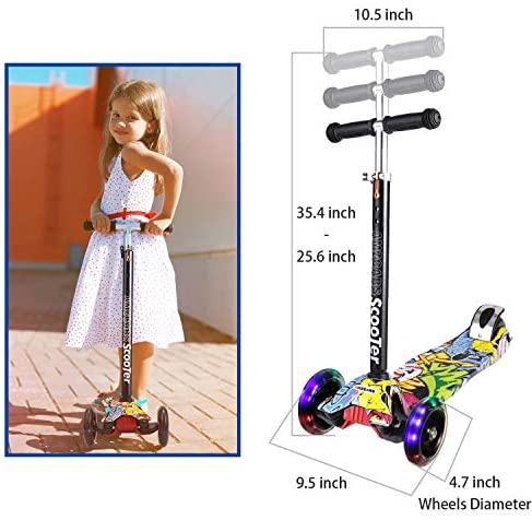 Kick Scooter for Kids, 3 Wheels Toddlers Scooter for 3 4 5 6 Years Old Boys Girls Learn to Steer, Kids Scooter 4 Adjustable Height, Extra-Wide Deck, Flashing Wheel Lights for Children Gifts