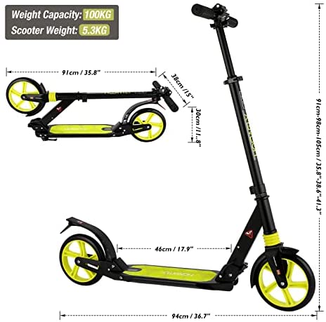Kick Scooter for Kids 6-12 Years and Up, Folding Scooter for Teens/Adult with 4 Adjustment Levels, 8