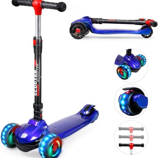 Kick Scooter Toddler Scooter, Lean-to-Steer Glide Scooter with Extra Wide PU Light-Up Wheels and 3 Adjustable Heights for Children from 3-12yrs