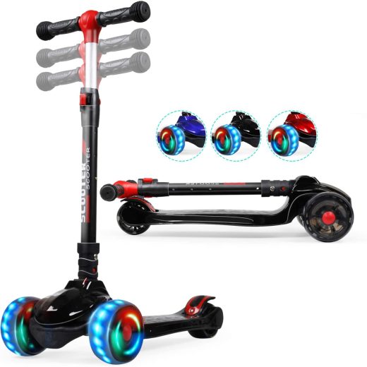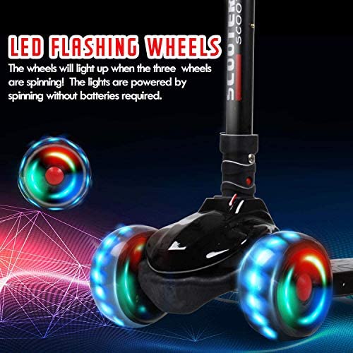 Kick Scooter Toddler Scooter, Lean-to-Steer Glide Scooter with Extra Wide PU Light-Up Wheels and 3 Adjustable Heights for Children from 3-12yrs