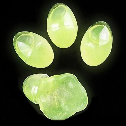SET INCLUDES – 12 pieces individually packaged Glowy Putty in transparent plastic refillable eggshells. It comes in a neon green color. SUPER SATISFYING HAND SLIME – Squeeze it, squish it, stretch it, mold it, and snap it for hours of and entertainment. A perfect interactive toddler art activity or a preschool bouncy playset for a therapeutic feeling and a relaxing ambiance. CREATIVE CRAFT AND COLLECTIBLES – Its egg-shaped container is fillable with small funny figures. Mix this multipack, expandable tool with your favorite beads, glitter, charms, custom made accessory, and other decoratives and share your textured creations with friends. SAFE FOR CHILDREN – Materials are a premium grade plasticine, unscented, hypoallergenic, and non toxic. Just take the stuff out from each case and turn down the lights to radiate the glow. It is reactive to dark and can be charged up over and over again under a bright light. GREAT GIFT, NOVELTY, OR STUDENT INCENTIVE – Makes a cool Christmas stocking stuffer, goody bag and pinata filler, birthday surprise giveaways, game or carnival prizes, Easter egg hunt and Halloween treats; nice decorations together with the centerpiece.