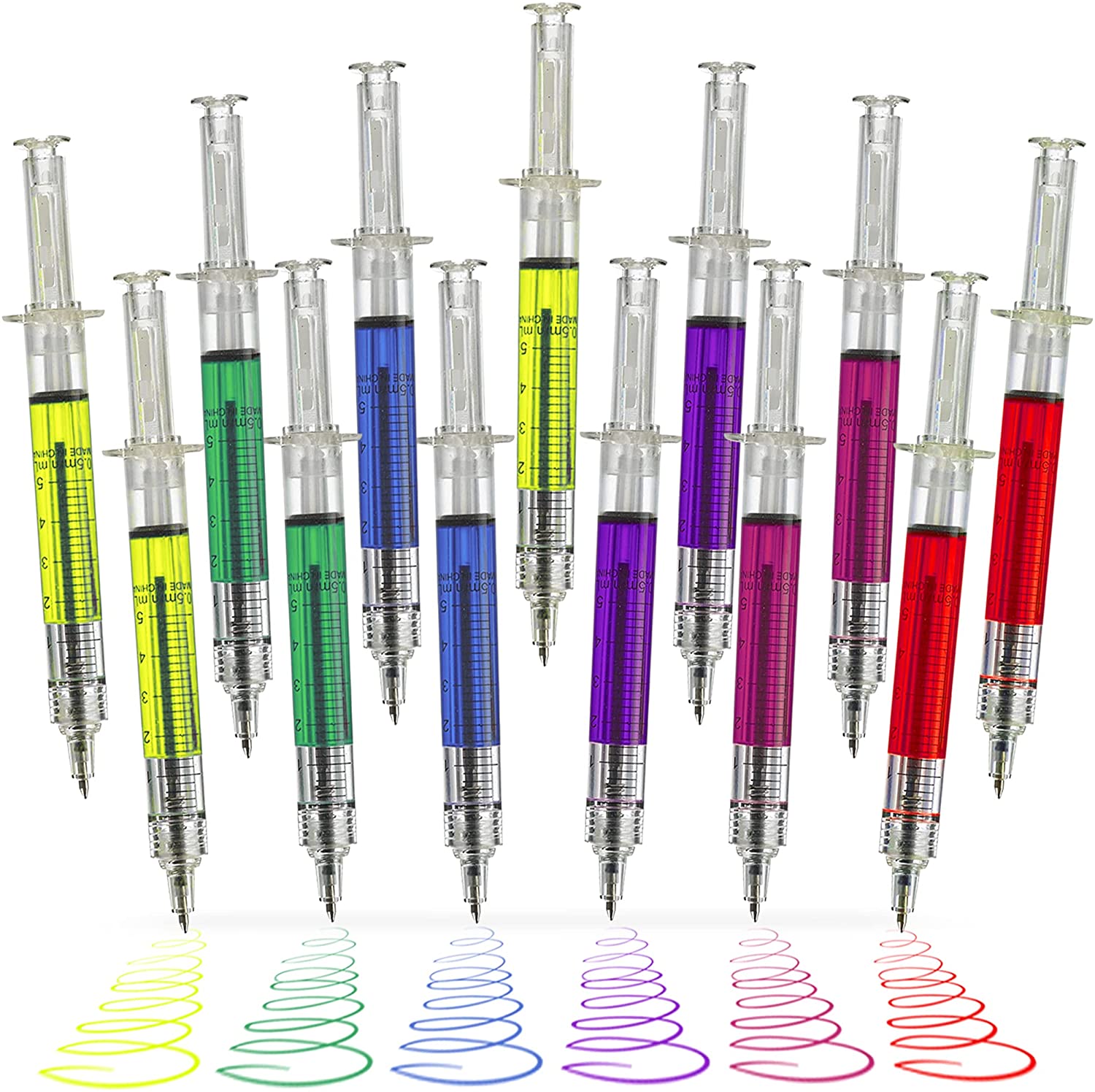 Kicko Syringe Pens – 12 Pack Multi-Color Syringe Pen – Writes in Blue or Black Ink for Boys, Girls, Imaginary Doctor Play, School Supplies, Party Favors, Goody Bag Fillers and Prizes