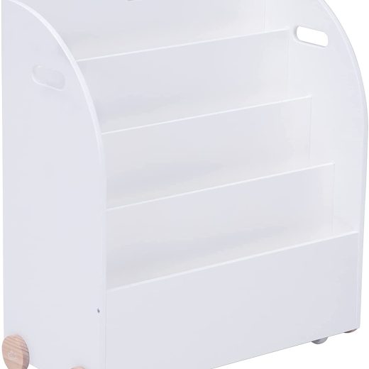 Kid Bookshelf with Wheels, White Wood Bookshelf Display Stand for Kids 1 Year Up, Baby Book Shelf/Child Bookshelf/Toddler Bookshelf/Kid Book Display/Book Shelf Case Organizer Kid Wooden