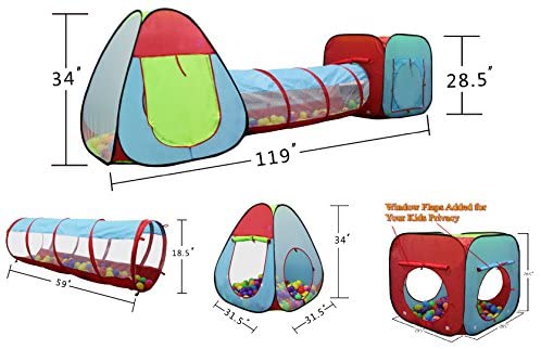 ♥ – TRIPLE THE FUN – ♥ Each child’s tent and tunnel combo set features a unique “teepee” ball pit tent, long crawl tunnel, and square t…