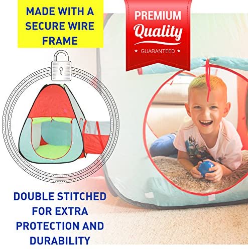♥ – TRIPLE THE FUN – ♥ Each child’s tent and tunnel combo set features a unique “teepee” ball pit tent, long crawl tunnel, and square tent, giving boys and girls more fun and adventure to explore, play games, and be imaginative. ♥ – PERSONALIZED PLAY – ♥ Great for indoor and outdoor use, the 3-piece Kiddey play tent can be used as one massive playground set or as individual pieces. You can even add small plastic balls for even more fun. The choice is yours! ♥ – ENHANCED DURABILITY – ♥ Thanks to waterproof, tear-resistant polyester fabric, and improved flexible steel spring wire frame, our pop up tent and tunnel are built for crawling, rolling, horseplay and more; and all from multiple kids at a time. Great gift for boys and girls. ♥ – EASY SETUP & STORAGE – ♥ Each individual piece can be setup and stored quickly and easily thanks to the simple “pop up” design and ground stakes. The teepee is large enough for small children to stand up but small when folded. ♥ – FUN WHEREVER YOU GO – ♥ Being a parent or teacher means you live a busy, on-the-go lifestyle. That’s why our tent/tunnel set is safe to use at home, in the backyard, in the classroom and even at the park! ★ 100% SATISFACTION GUARANTEED or YOUR MONEY BACK! ★ ♥ – BEST GIFT TOY – ♥ Kid’s playhouses in general offers great opportunity for pretend play and encourage kids to use their creativity and imagination. The Kiddey playhouse gift for kids will give them a whole new setting for their pretend play. Great birthday gift for 1 – 6 Year boys and girls, best gift for any occasion or party and great Christmas gift.