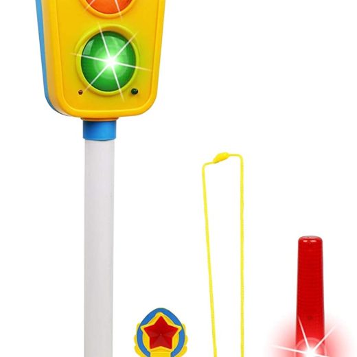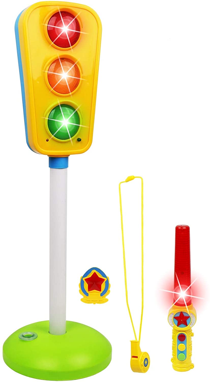 Automatically changes between red, yellow, and green. Teaches traffic regulations and safety rules