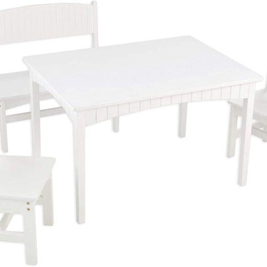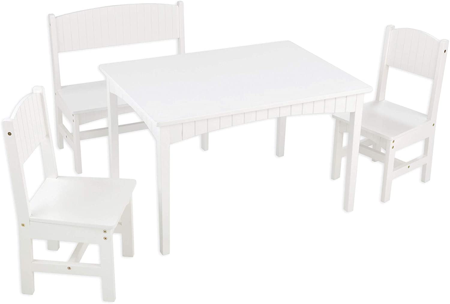 KidKraft Nantucket Wooden Table with Bench and 2 Chairs, Childrens Furniture – White, Gift for Ages 3-8
